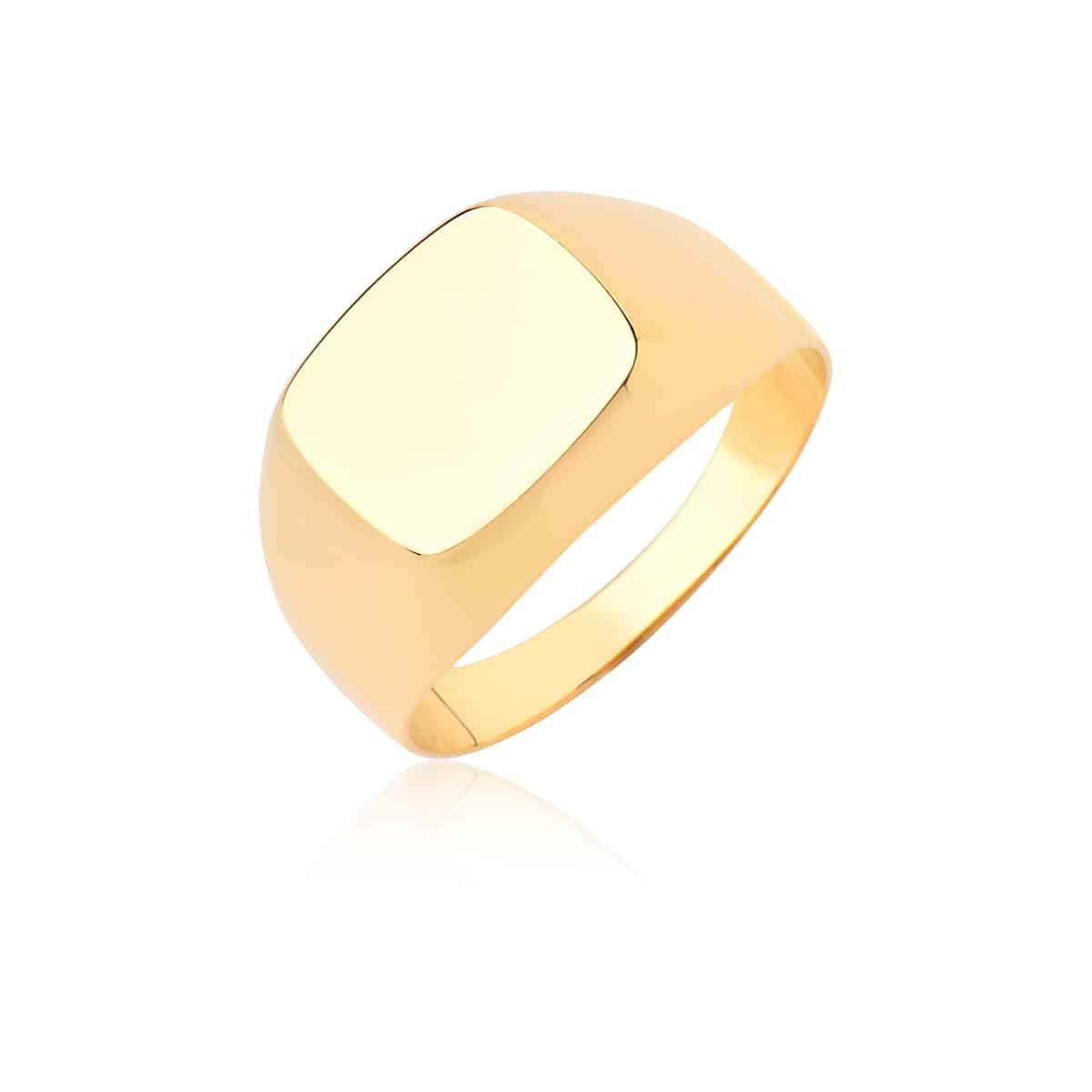 Anel sinete quadrado C508, disponível em ouro amarelo maciço nas opções 10K e 18K.