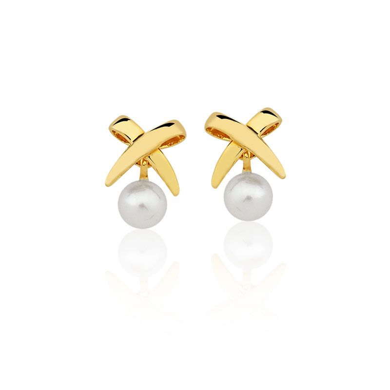 Brinco de pérola BC06 disponível em ouro amarelo maciço nas opções 10K e 18K.