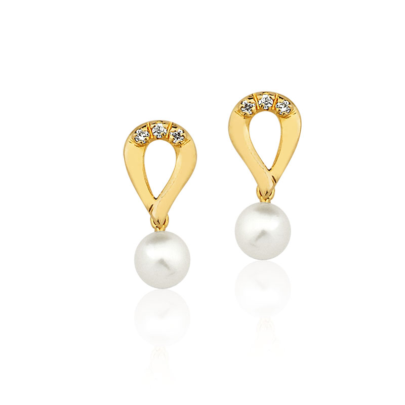 Brinco de pérola com pedra BC03 disponível em ouro amarelo maciço nas opções 10K e 18K.