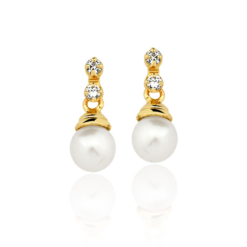 Brinco de pérola com pedras BC05 disponível em ouro amarelo nas opções 10K e 18K.