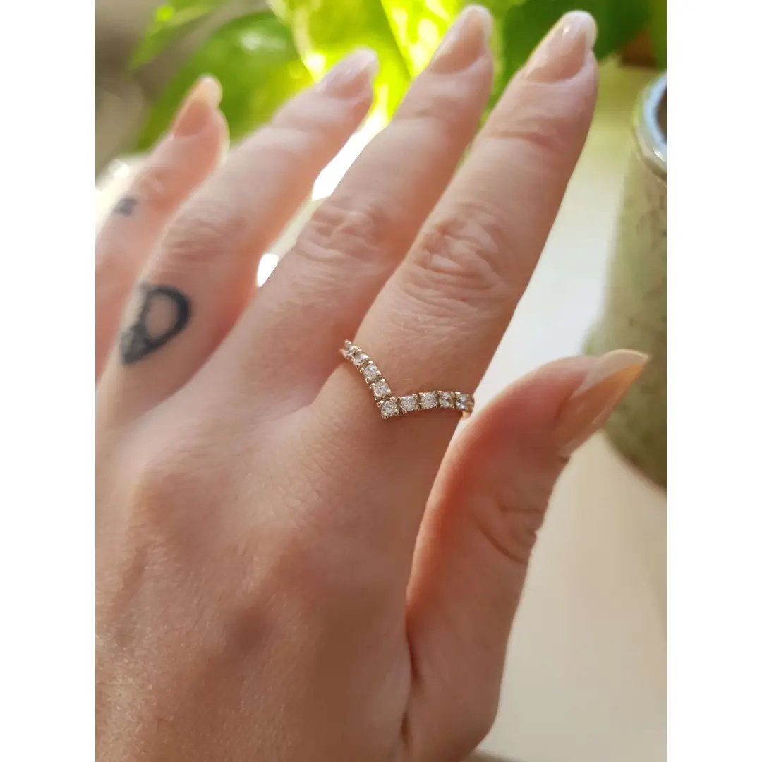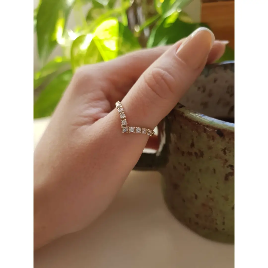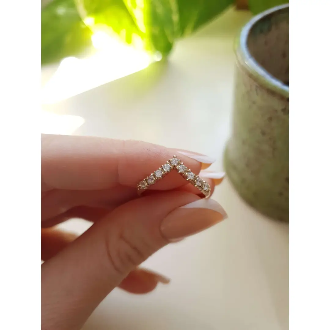 Sabe aquela joia que você olha e se apaixona à primeira vista? É exatamente isso que acontece com a Meia Aliança em V modelo C1002.