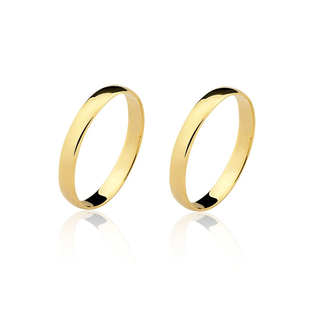 Par de aliança em ouro amarelo CN22, disponível nas opções 10K e 18K.