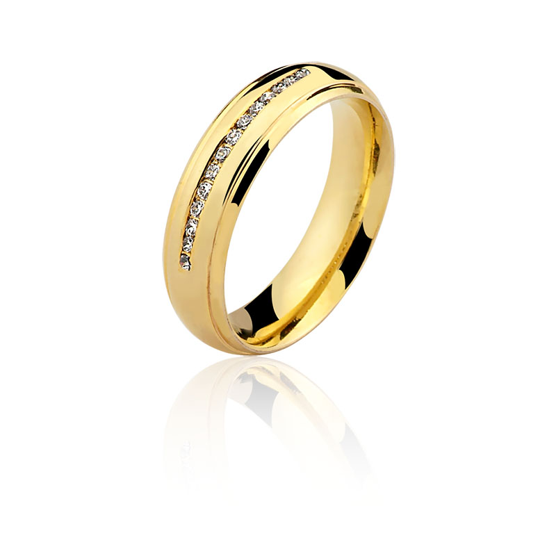 Par de aliança diamantada em ouro amarelo CN37 (5,5mm) disponível nas opções 10K e 18K.