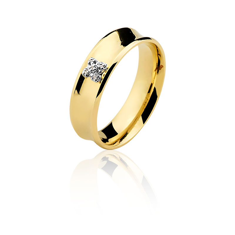Aliança anatômica em ouro amarelo CN64, disponível nas opções 10K e 18K.