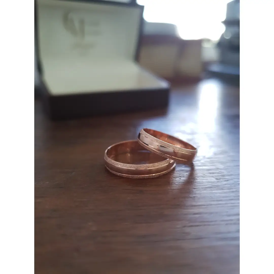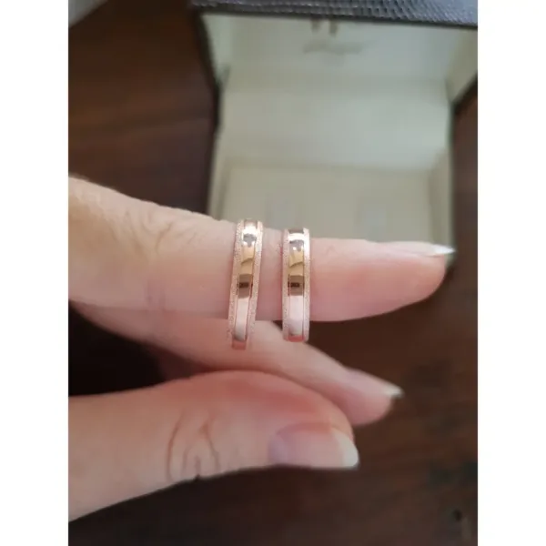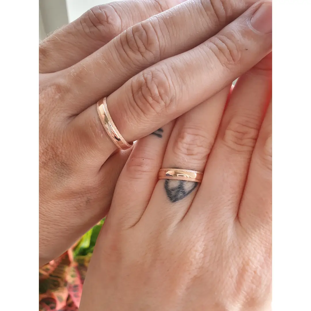Par de aliança em ouro rosé, disponível nas opções 10K e 18K.