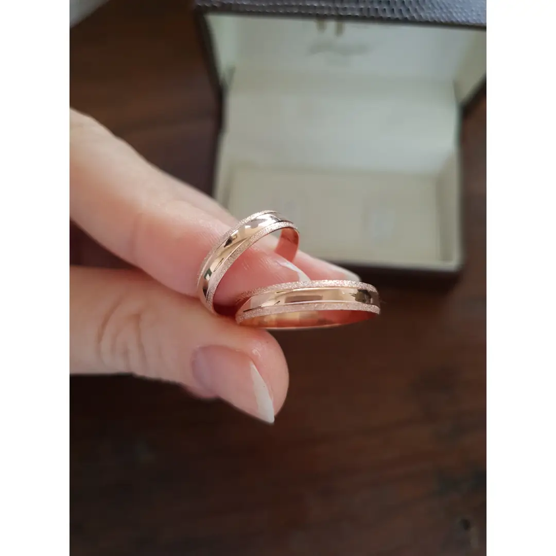 Detalhe em fosco na parte externa da aliança.