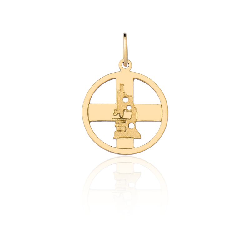 Pingente de formatura  PC140 (BIOMEDICINA) disponível em ouro amarelo maciço nas opções 10K e 18K.
