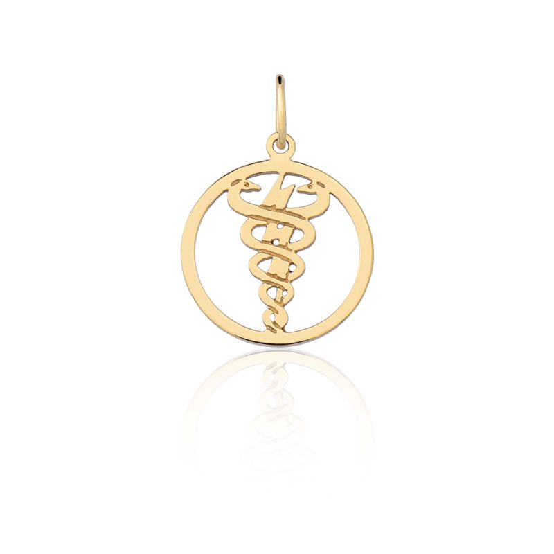 Pingente de formatura PC140 (FISIOTERAPIA) disponível em ouro amarelo maciço nas opções 10K e 18K.