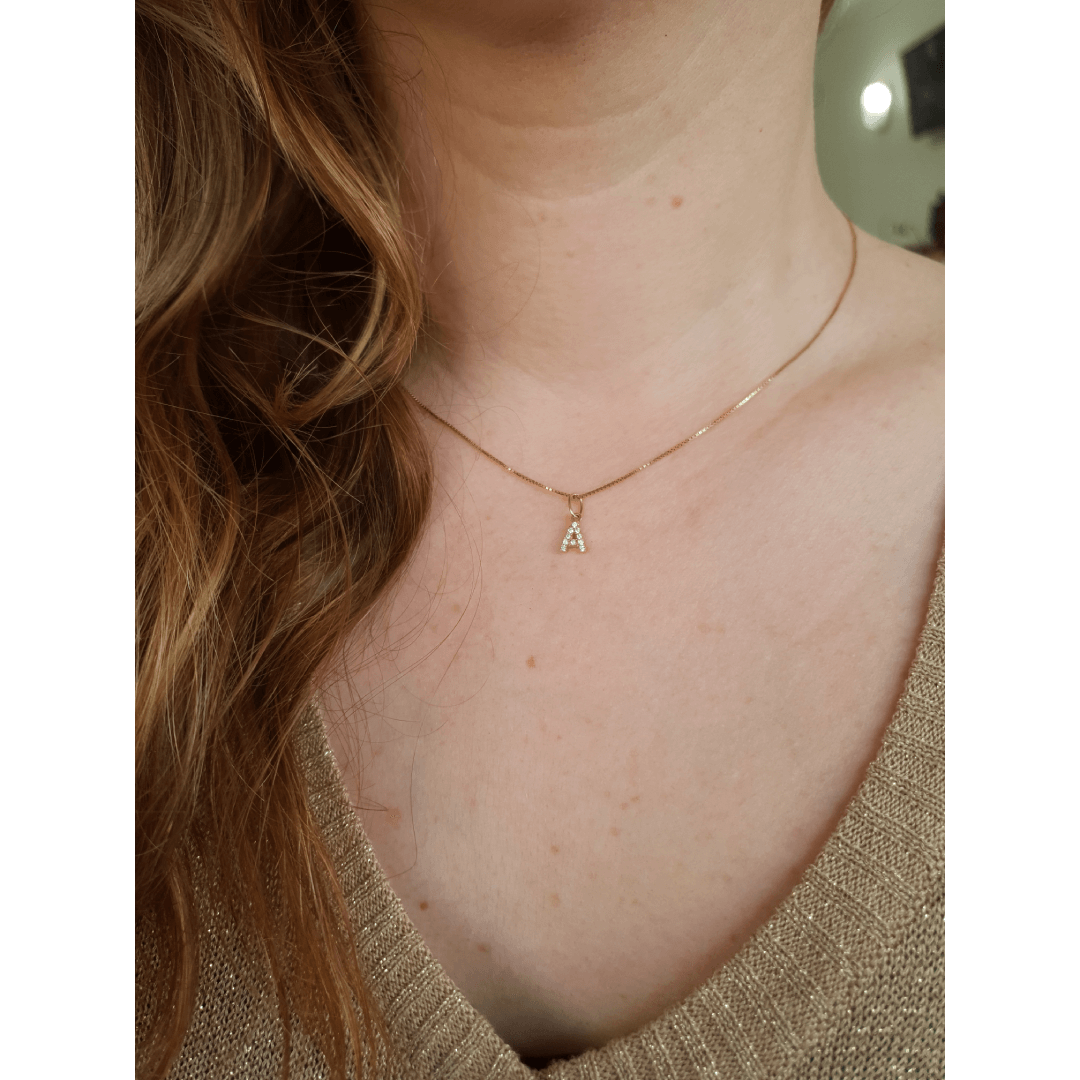 Pingente letra A modelo P700, disponível em ouro maciço 10k e em ouro maciço 18k.